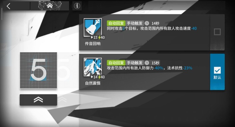 技能一 传音回响 攻击目标加到二人,与天赋二重复,减速则是锦上添花却是块重复的布料,hhh,最后也只能被放弃了,顺带一提,rank10也是两个目标,没有质变。可以在精一的时候用来作补刀输出,特点关卡地形用来减速增伤,比如幽灵。
