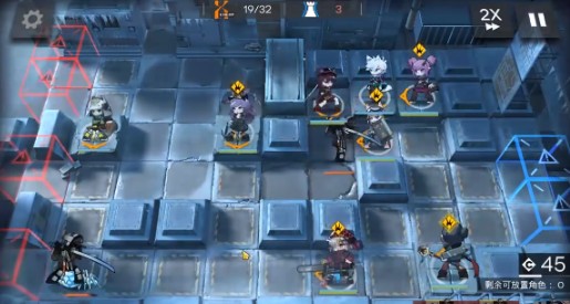 4.在下路摆一个近卫负责打阿消推下来的冰爆源石虫(也可以远卫朝上辅助上路输出),右上主阵地单体术士后面补一个群体术士输出。
