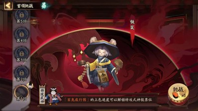 首领挑战难度分为易、普、难、极,通关的回目数越高,挑战难度与奖励也越高。每日18:00,将会开放新回目,所有回目的首领挑战难度也将降低。
