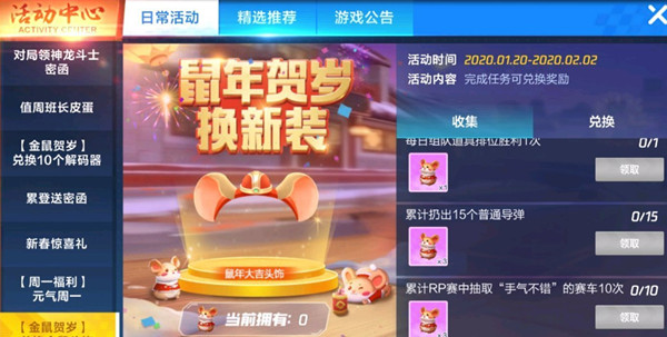 头饰的兑换活动从1月20日持续到2月2日,大致是14天,而每天的任务包括有组队竞速和道具赛的排位胜利,而此外还有额外的单次任务例如累计扔15个普通**、累计RP赛抽取“手气不错”的赛车10次。
