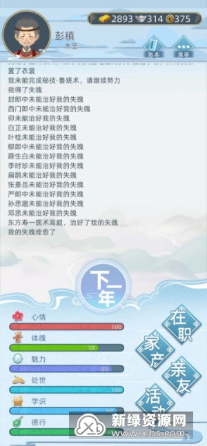 玉圣,研习什么启灵秘技失败,得了失魂症,现在华佗,孙思邈,李时珍,扁鹊都来两遍了,一次10两黄金左右,都治不好。