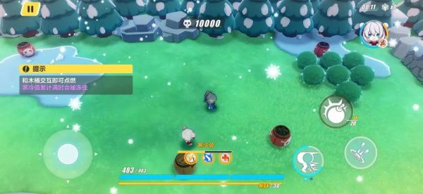 首先是祭龙坛与白龙江这两关,根据指引可知完成任务的要点是“四个红胖子”,而地图内唯一是红色的就只有炸药桶,所以这两关要求我们引爆地图内的四个炸药桶即可完成。