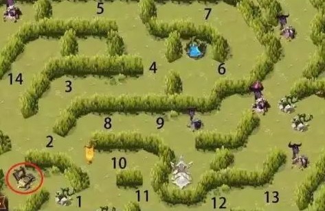 第四关:来到温泉的位置后,先往左边走,分别解除图中的智力型英雄陷阱、敏捷性英雄陷阱和力量型陷阱。解除三个陷阱后,右上角的陷阱消失,并得到“先祖祝福”,然后去右上角打BOSS,打完后开绿色小门。陷阱只能解除,不能觉得踩了就结束了