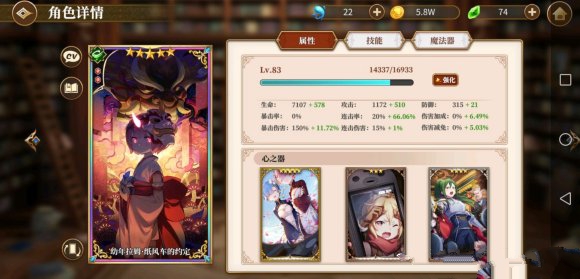 第一版:输出的两大流派,连击vs暴击,游戏内所有输出角色都可以归结到这俩里面,举个例子,下面两张图是我目前养的俩输出,连击的拉姆,暴击的剑鬼。