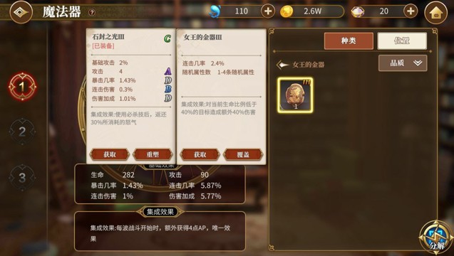魔法器:首充拉姆(工具人选手)带戒指,开局六点能量,给另一个拉姆输出,爱蜜莉雅可以带面具(减两个回合sp技能冷却时间。这是我没发现这个玩法之前的套路,爱蜜莉雅心之器带暴击,只要一个暴击就可以再来一发了)拉姆带沙漏,主打ap技能还可以再加20%的输出