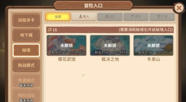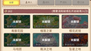 每日0点会刷新6个未开放的秘境,使用秘境石解锁(无时间限制)。