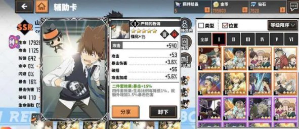 除了升级以外,支援和辅助卡也可以提升战斗力。辅助卡在前期来说无疑帮助很大,倘若两到三星的卡装满,那么可以提升上千的攻击力。像暴击攻击一系列的副属性也不在话下。辅助卡可以随意更换,但是支援角色是没办法返还资源的,所以说在前期培养就一定要慎重。