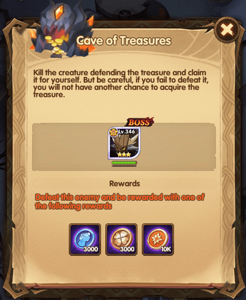 困难迷宫宝藏洞穴boss俗称哥布林,只可攻打一次,失败则不可再次进入(中途退出重进可多次挑战),建议有双剑,猫毒,毒液之爪,雷符/锤,死神其中之一再尝试击杀,其攻击方式和工会boss类似,所以阵容选择可照搬工会boss。