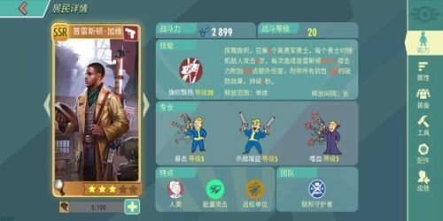 普雷斯顿加维是一位定位射手的高暴击ssr,技能的设定都是以暴击为主。小黑的专长跟其他的ssr是一样的都是三个被动,第一个是暴击,升级可以增加小黑的暴击值伤害,第二个是杀敌增益,在每次击败敌人之后都可以增加自身一定的攻击力,第三个专长是暴击吸血,如果暴击可以每次都吸取一定的生命值。
