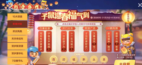 跑跑卡丁车官方竞速版2026最新版v1.41.2正版 类型:赛车竞速 大小:1.97G 语言:中文 立即下载 跑跑卡丁车手游当中有很多的新春活动,其中的一个活动就是新春对联,你也需要去填写对联,下面小编就来给大家介绍一下跑跑卡丁车手游新春对联答案一览,赶紧来看看吧!