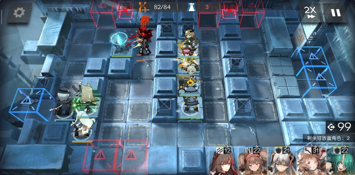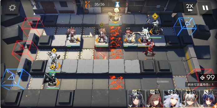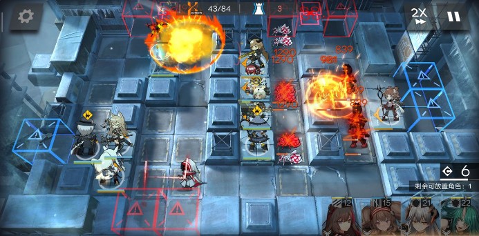 所以,开局先在左下放一个挡2的,有点输出的,不那么脆的近卫,然后补个狙,狙把自己冻上之后再上奶,防止一起被冻。