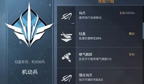 机动兵顾名思义是一个机动性非常强的角色,这个角色有着一个钩爪技能可以让玩家们飞檐走壁,还可以减少我们从高处掉落所受到的坠落伤害,是所有角色中可玩性最高的一个。